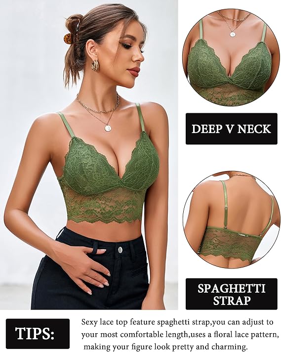 Bralettes for Women V Neck Spaghetti Strap Bra Lace Tops