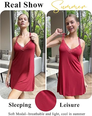 - 【Soft Fabric】The sexy sleepwear for women is made of high-quality lace and modal fabric,breathable,skin-friendly and stretchy.Combined with the loose fit style,which ensures you sleep comfortably without feeling constricted for all-day comfort